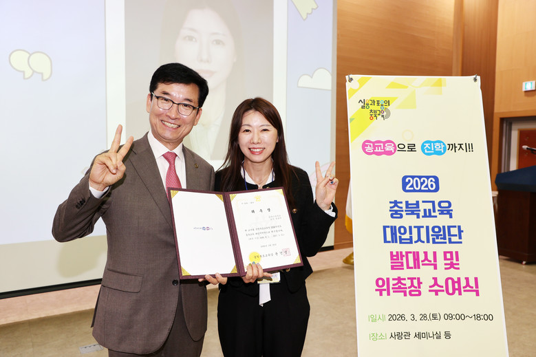 [충북 세계타임즈=이현진 기자] 충청북도교육청(교육감 윤건영)은 28일(토) 14시, 충북교육청 사랑관 세미나실에서 2026년 충북교육 대입지원단 발대식 및 위촉장 수여식을 개최했다.