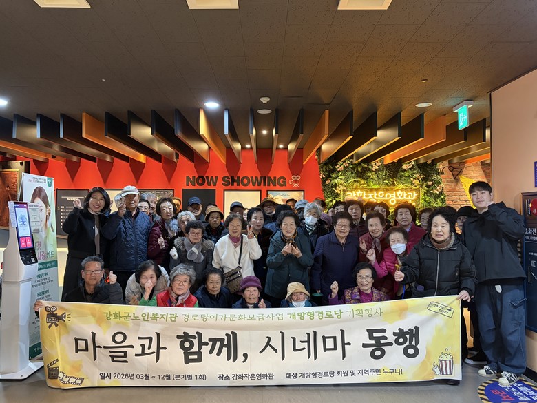 [강화군 세계타임즈=심하린 기자] 강화군노인복지관(관장 윤심)이 지난 11일, 강화 작은영화관에서 개방형 경로당 문화프로그램 ‘마을과 함께, 시네마 동행’ 1차 영화 관람을 진행했다.