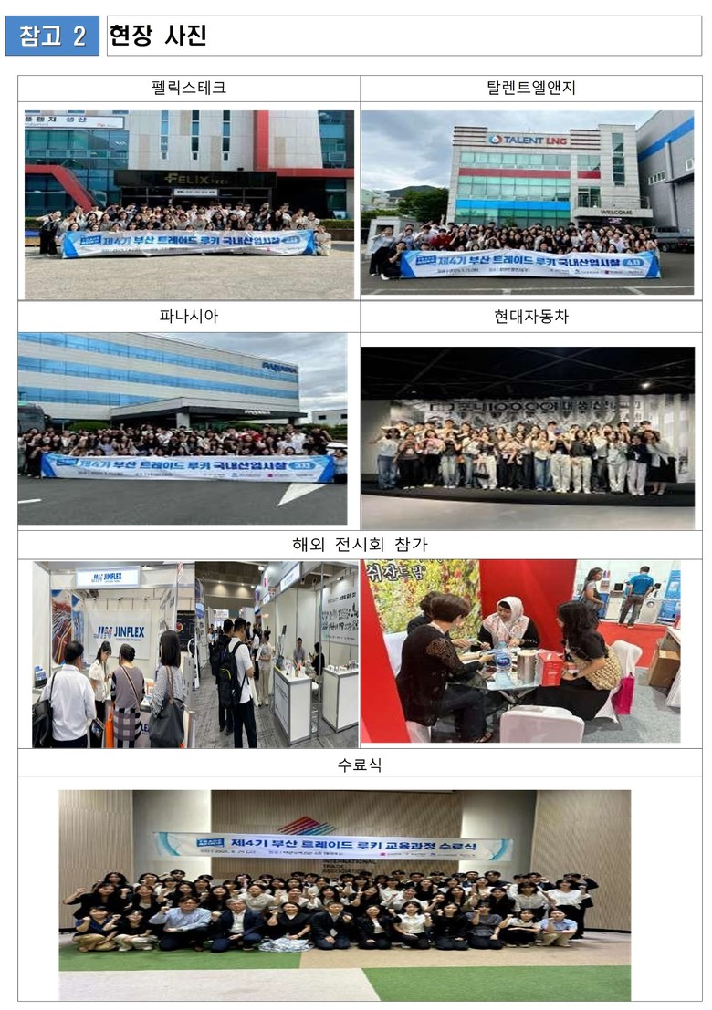 ▲산업현장 견학(㈜포스코, 삼성전자㈜, 부산신항만 등) ▲모의 수출 상담회 ▲해외전시회 참여 지원(자카르타·오사카) ▲디지털 무역 실습(덱스터즈 연계) 등을 통해 현장에서 즉시 활용 가능한 실무 역량을 집중적으로 강화한다.