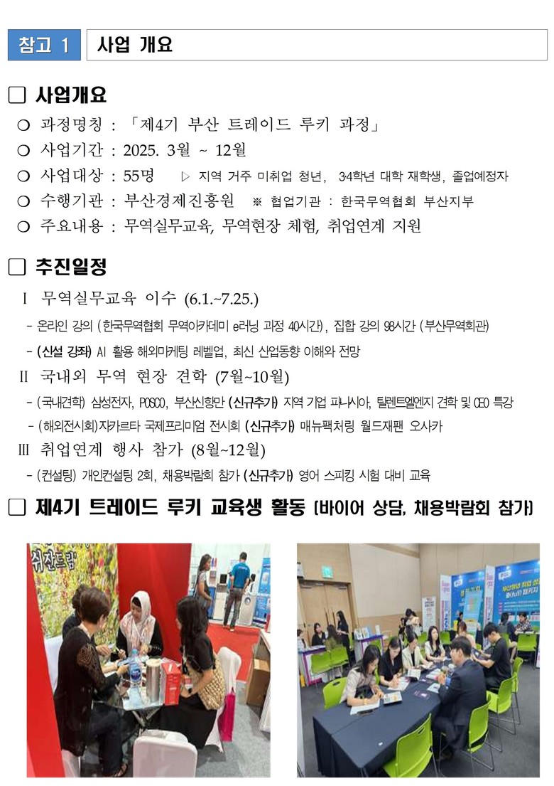 아울러, '부산 트레이드 루키' 과정은 단순 이론 교육을 넘어 실전형·현장 중심 프로그램을 운영하고 있다.
