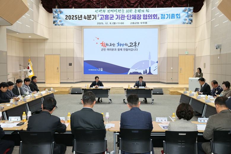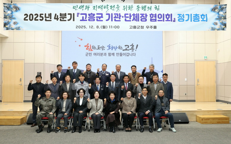또한, 협의회에서는 입회를 신청한 (사)전국이·통장연합회 고흥군지회의 신규 편입을 의결했으며, 지역 현안과 관련해 ▲2026 고흥 남열 해맞이 행사 개최 ▲고흥군립하늘공원 준공 ▲겨울철 복지사각지대 집중 발굴 ▲희망 2026 나눔 캠페인 성금 모금 ▲연말연시 소비 진작을 통한 기역경제 활성화 ▲산불 조심기간 홍보 ▲겨울철 전군민 독감 예방접종 홍보 ▲농업경영체 변경등록 의무사항 안내 등 9개 주요 협력 과제를 공유하고 논의했다.