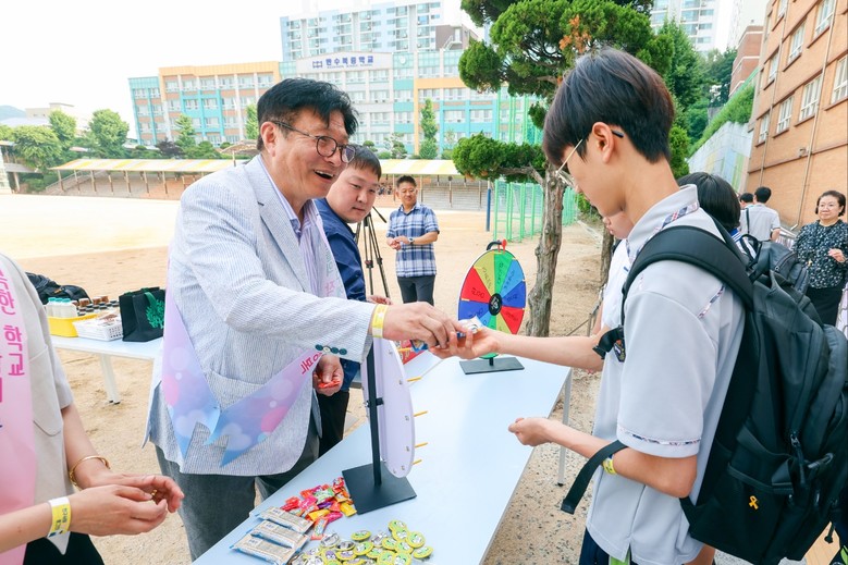 특히 이날 행사에는 도성훈 교육감이 직접 참여해 학생·학부모와 소통하는 시간을 가졌으며, 도 교육감은 학교폭력 예방을 위해 힘쓰는 학생들의 노력을 격려했다.