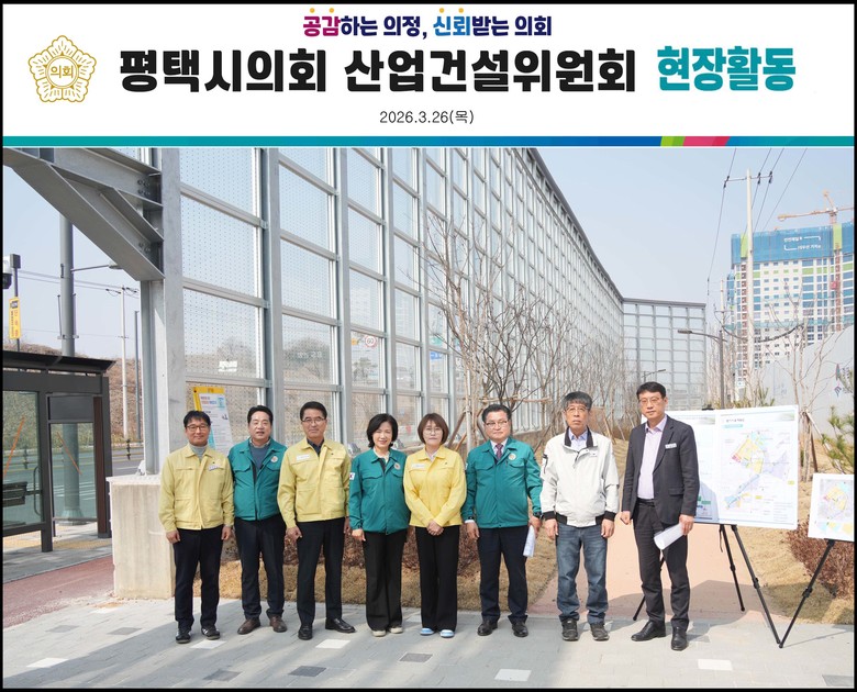 현장 중심 의정활동 펼쳐- [평택시 세계타임즈=송민수 기자] 평택시의회 산업건설위원회(위원장 류정화)는 제261회 임시회 중인 3월 24일부터 26일까지 3일간 주요 사업 현장을 방문하는 현장활동을 실시했다.