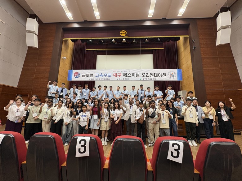 [대구 세계타임즈=한윤석 기자] 대구시교육청은 8월 22일(금)부터 23일(토)까지 대구교육낙동강수련원과 대구의 주요 문화 공간에서 해외 학생 18명과 대구 학생 31명, 인솔 교사 19명 등 총 68명이 참여하는‘2025년 글로벌 교육수도 대구 페스티벌’을 개최한다.
