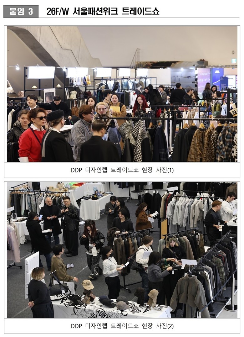 특히 이번 시즌은 패션쇼·프레젠테이션·트레이드쇼·포럼 등 주요 프로그램을 DDP 한 곳에 집약 운영하는 ‘원사이트(One-site)’ 방식을 도입해, 쇼 관람과 비즈니스 상담이 유기적으로 연계되는 비즈니스 중심 패션위크 모델을 정착시킨 점이 성과 요인으로 평가된다.