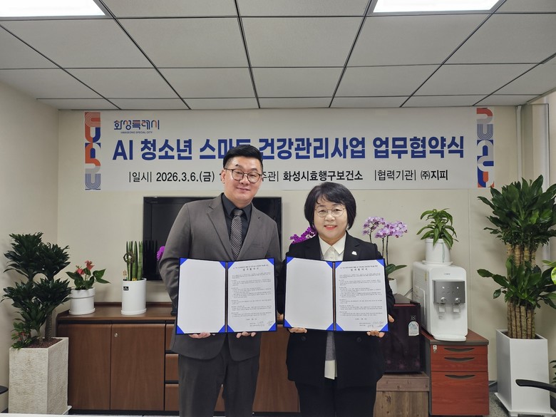 [화성시 세계타임즈=송민수 기자] 화성특례시 효행구보건소는 6일 오후 2시, AI 성장예측 시스템 운영기관과 ‘ AI 청소년 스마트 건강관리사업’ 추진을 위한 업무협약을 체결했다.