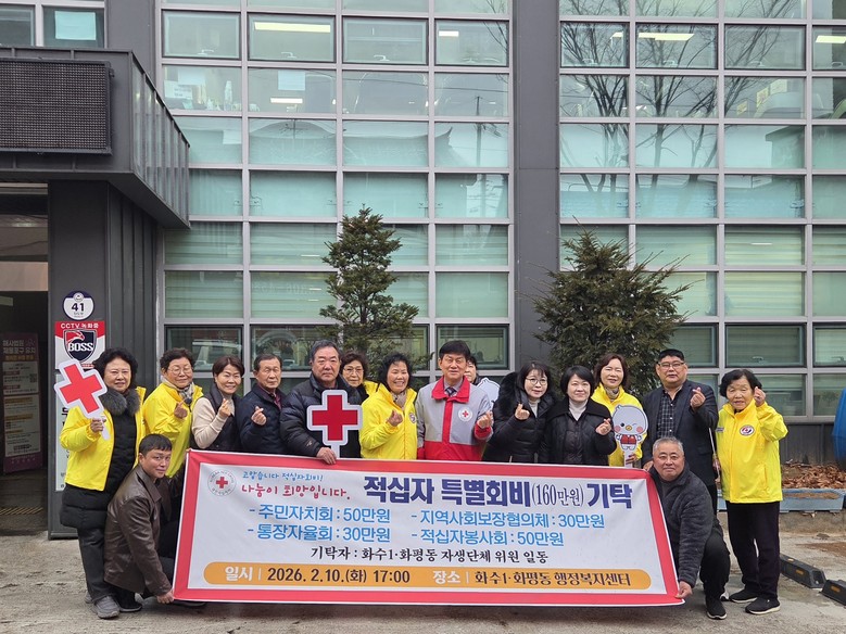 화수1‧화평동 자생단체는 2026년도 대한적십자사 특별회비 160만원(주민자치회 50만원, 통장자율회 30만원, 지역사회보장협의체 30만원, 적십자봉사회 50만원)을 전달하였다.
