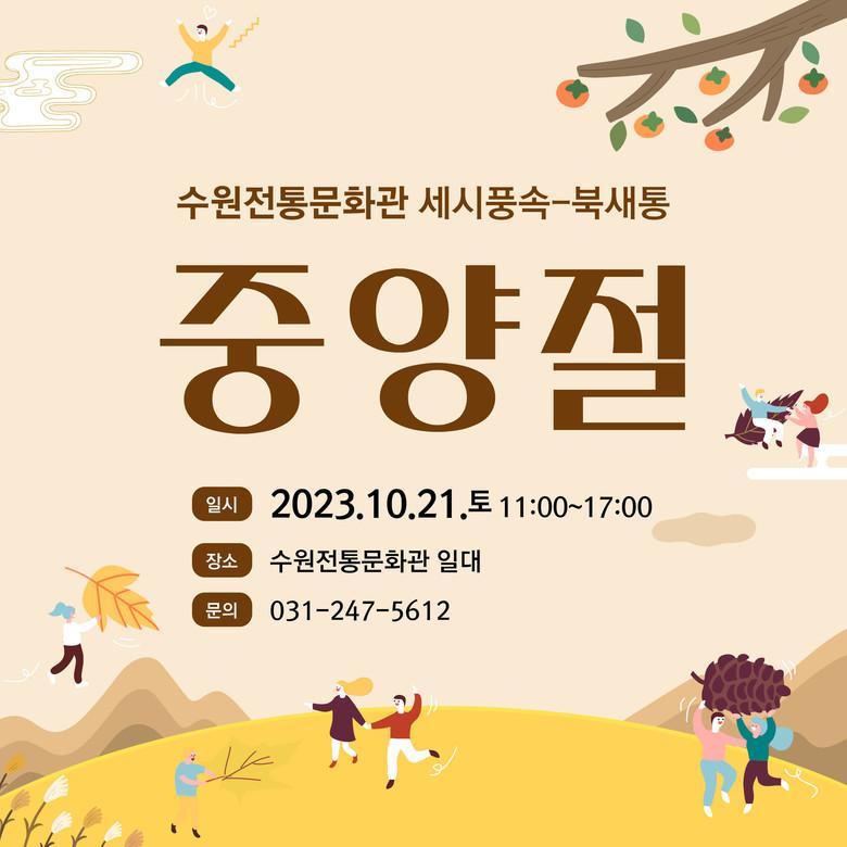 또한 중양절이면 열리던 축하연처럼 이번 북새통 행사에서도 수원전통문화관의 중양연을 열어 색소폰 공연, 태권도 군무, 케이팝 댄스 공연을 선보인다.