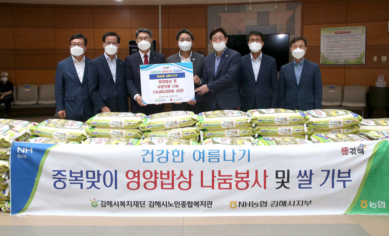 김해시복지재단 이봉재 경영본부장은 “ NH농협 김해시지부에서 지역사회 어르신들을 위해 행사를 후원해주시어 너무 감사하다. 오늘 대접된 영양 밥상을 드시고 어르신들이 건강하게 여름을 잘 지내셨으면 좋겠다.”고 전했다.