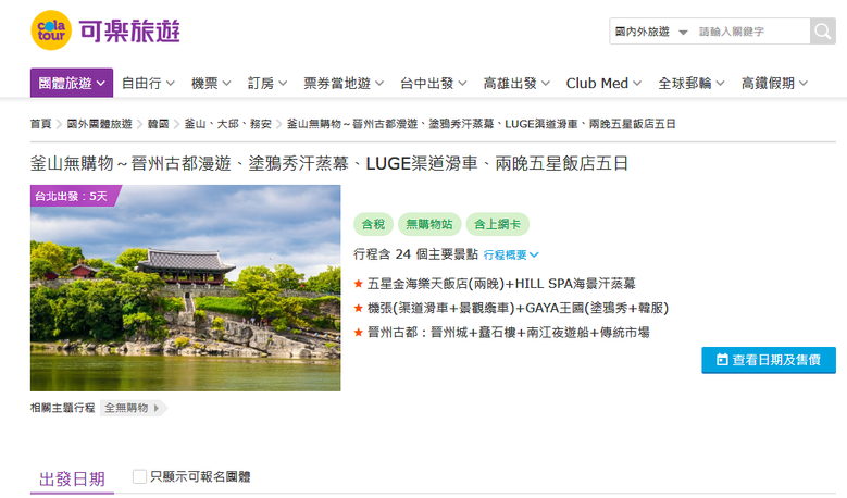 | ▲ 콜라투어 경남 정기상품 판매 페이지 |