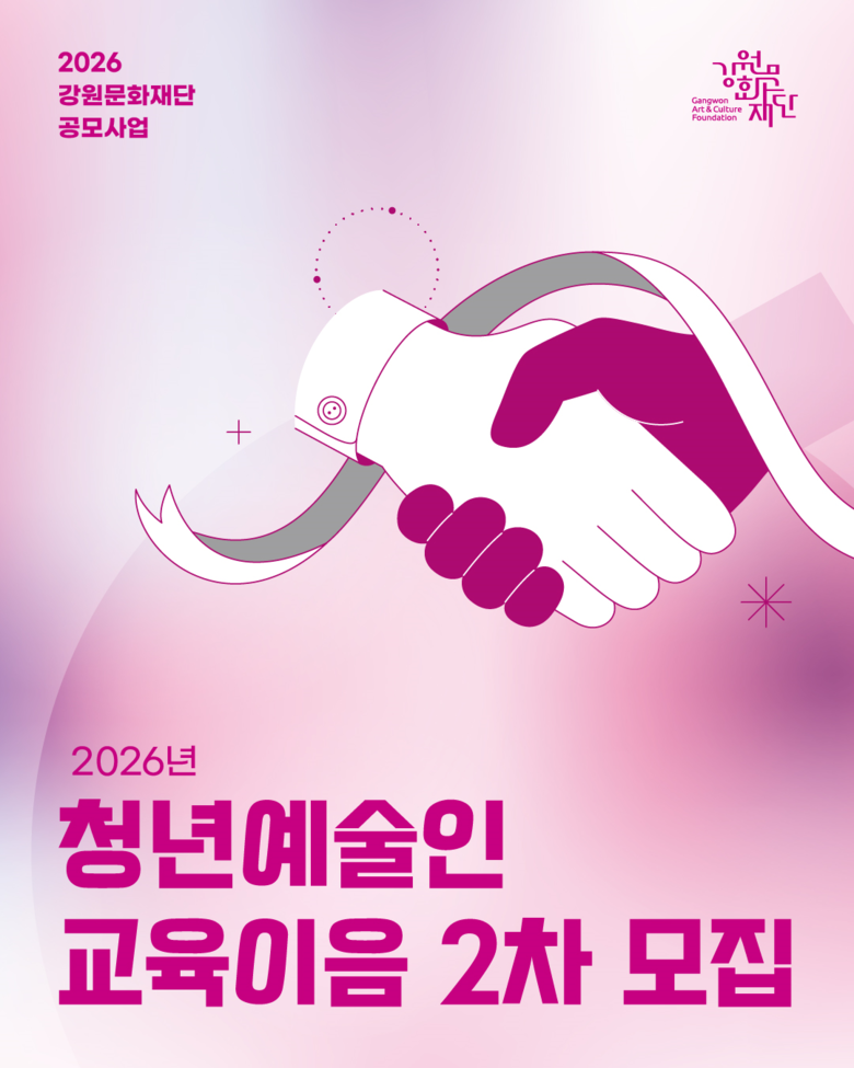 2차 공모는 17일(화) 18시까지 이메일을 통해 접수하며, 자세한 내용은 강원문화재단 홈페이지에서 확인할 수 있다.