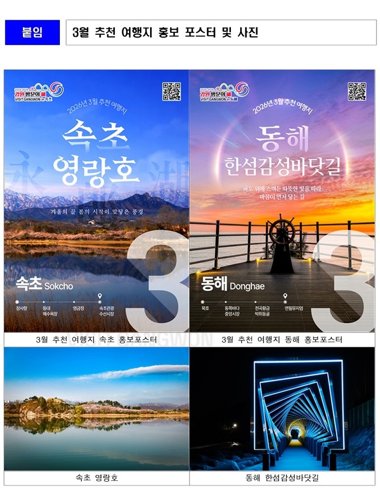 강원관광재단 최성현 대표이사는 “호수와 바다가 푸른빛으로 물드는 3월, 강원특별자치도에서 가장 먼저 푸른 봄의 시작을 경험하며 겨우내 움츠렸던 일상에 활력을 채워보시길 바란다”고 전했다.