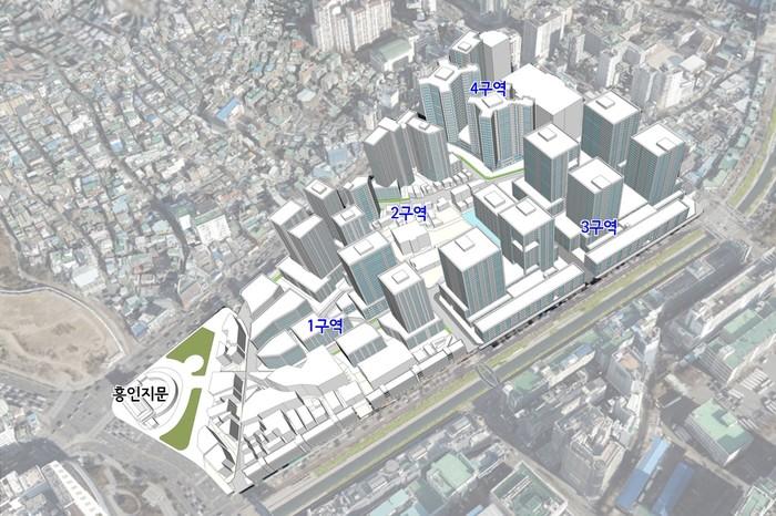 1·2구역은 문화재(흥인지문) 앙각 및 산업특성 보존 등을 고려하여 소단위정비형을, 3·4구역은 대규모 블록 단위로 개발하는 일반정비형의 정비수법을 적용해 각 구역의 입지여건을 고려하여 정비기반시설의 부담률, 건폐율, 높이 등에 차등을 두었다.
