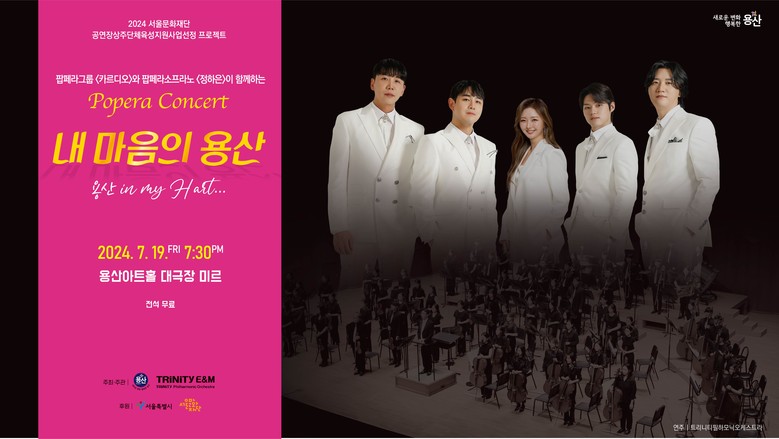 이달 19일 오후 7:30 용산아트홀 미르에서 ‘내 마음의 용산(용산 in my heart)’ 팝페라 공연을 제공한다. 당일 선착순 무료입장이다.