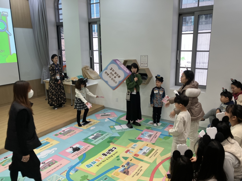체험은 대형 보드게임판을 활용해 아이들과 부모가 소통하며 시청각 교육과 전시 관람을 포함해 약 2시간 동안 이어진다.
