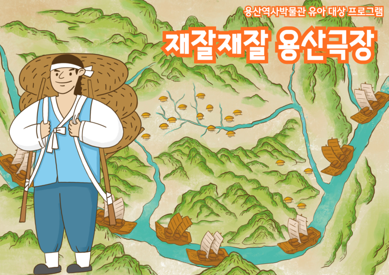 ‘재잘재잘, 용산극장’은 용산역사박물관의 역사 동화 그림책 ‘쌀가마니의 진실’을 각색한 인형극이다. 인형극을 본 뒤 아이들은 ‘꼬물꼬물, 용산체험’에서 △촉각(쌀 찾기) △행동(얼음 운반하기)을 체험하고 ‘왁자지껄, 경강시장’ 전시를 본다. 경강시장은 도성 안의 시장에 미곡, 목재, 어물, 소금을 공급하는 도매시장을 말한다.