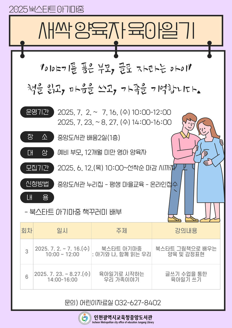 중앙도서관 관계자는 “이번 프로그램이 예비 부모가 정서적 안정을 찾고 좋은 부모로 성장하는 계기가 되길 바란다”고 전했다.