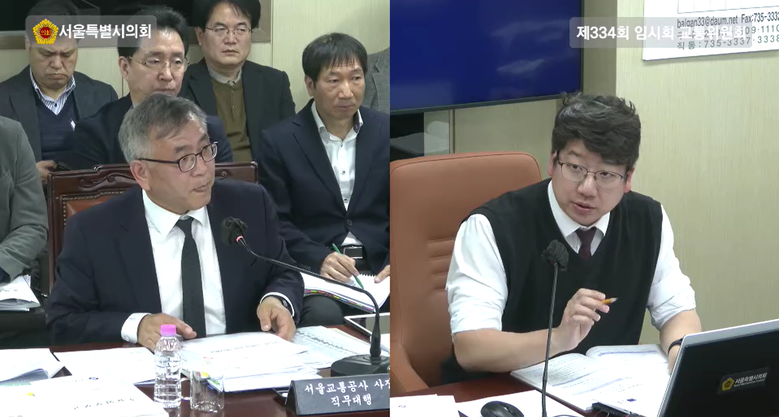 | ▲ 질의 중인 문성호 서울시의원의 모습. 왼쪽이 서울교통공사 사장 직무대행 |