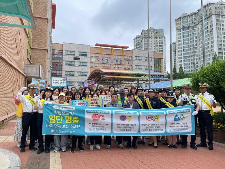 캠페인에는 인천논현경찰서, 녹색어머니연합회, 동방초 학부모회 및 운영위원회, 모범운전자논현지회, 남동구도시관리공단 생활체육팀 등 40여 명이 참여해 어린이들의 안전한 등굣길 조성을 위해 힘을 모았다.