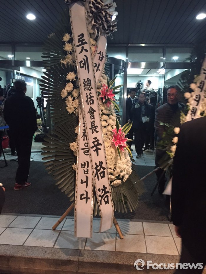 이에 따라 지난 22일 낮 ‘롯데 총괄회장 신격호’라고 한글로 쓰인 조화가 먼저 도착했고, 저녁에는 같은 문구가 한문으로 된 조화가 도착하는 일이 벌어졌다.