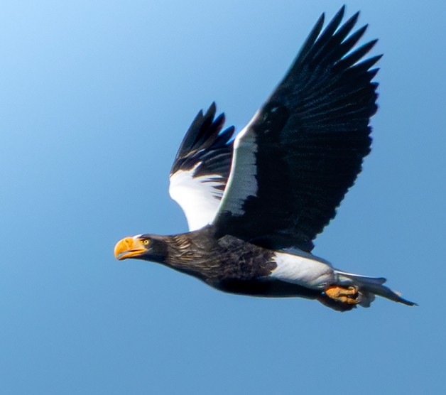 관찰된 검독수리는 날개깃 기부에 흰색 반점이 있고 꼬리가 흰색으로 확인돼 어린 새로 파악됐다.