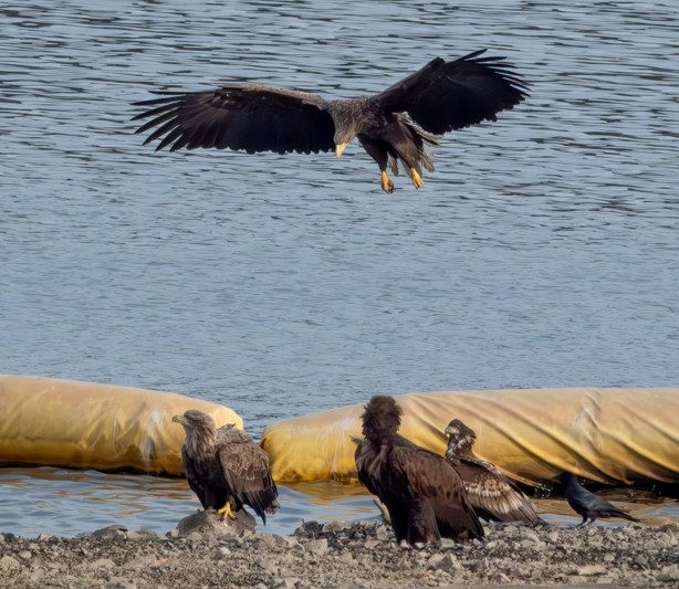 흰꼬리수리는 천연기념물, 멸종위기야생생물Ⅰ급으로, 드물게 해안 하구, 하천 등지를 찾아오는 겨울철새이다.