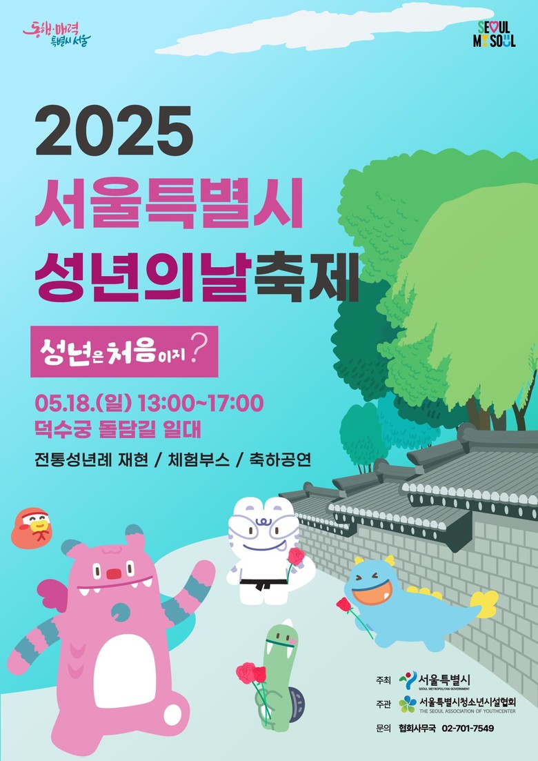 - 市, “전통 계승과 함께 어른으로의 첫걸음을 응원…세대가 함께 어우러지는 축제로 기대” [서울 세계타임즈=이장성 기자] 서울시가 오는 5월 18일(일) 오후 1시부터 5시까지 덕수궁 돌담길 차 없는 거리 일대에서 2006년생을 위한 성년의 날 기념행사를 개최한다. 올해로 만 19세가 되는 2006년생의 성년을 축하하고, 책임 있는 사회 구성원으로서의 첫걸음을 응원하기 위해 마련된 자리다.