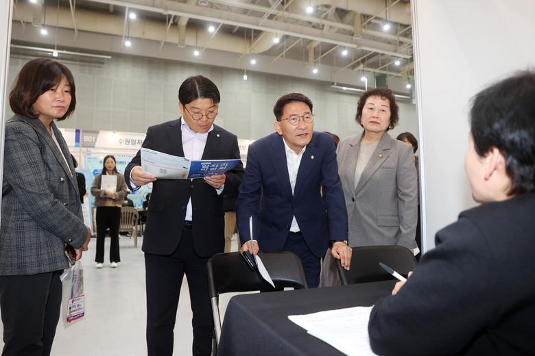[수원시 세계타임즈=송민수 기자] 수원특례시의회(의장 김기정)는 24일(목) 수원컨벤션센터에서 열린 ‘2023 수원시 맞춤형 일자리박람회’ 에 참석했다.