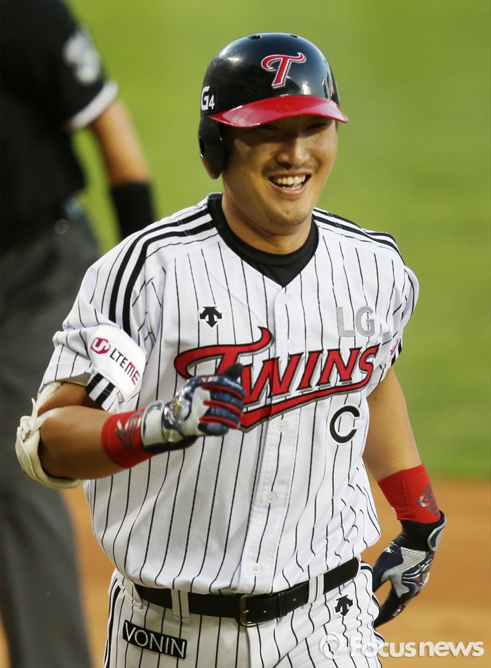 | △ 지난 9월 9일 잠실구장에서 열린 2015 프로야구 한화-LG전, 1회 LG 이진영이 우중월 2점 홈런을 치고 홈인하고 있다. <사진제공=포커스뉴스> |
