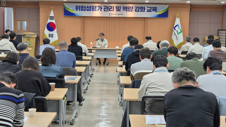 ▸ 위험성평가 CEO 특별교육, 관리 강화 교육 실시 [세계타임즈=대구 한윤석 기자] 대구공공시설관리공단은 3월 26일(목) 산업재해 예방과 안전문화 정착을 위해 대명동 공단 본사에서 CEO 주관 ‘위험성평가 관리 및 역량강화 교육’을 실시했다.