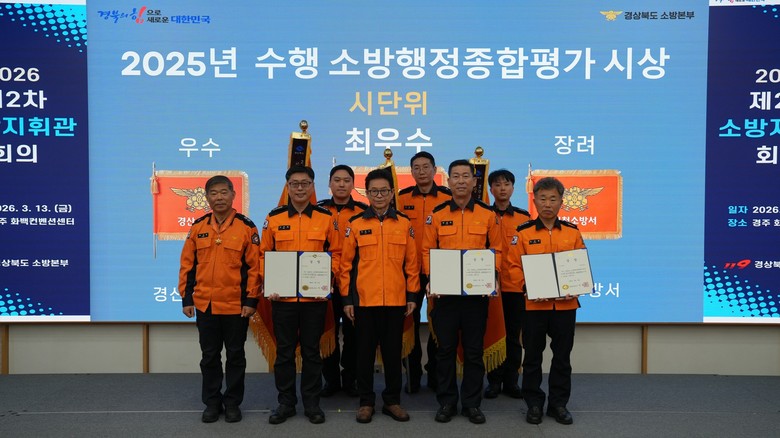 [세계타임즈=경북 한윤석 기자] 경상북도 소방본부는 지난 3월 13일 경주 화백컨벤션센터에서 열린 제2차 소방지휘관 회의에서 ‘2025년 경주 에이펙(APEC) 정상회의’ 관련 안전지원과 성공적인 행사 개최에 기여한 유공자에 대한 정부포상 전수식과 2025년 소방행정종합평가 시상식을 개최했다고 밝혔다.