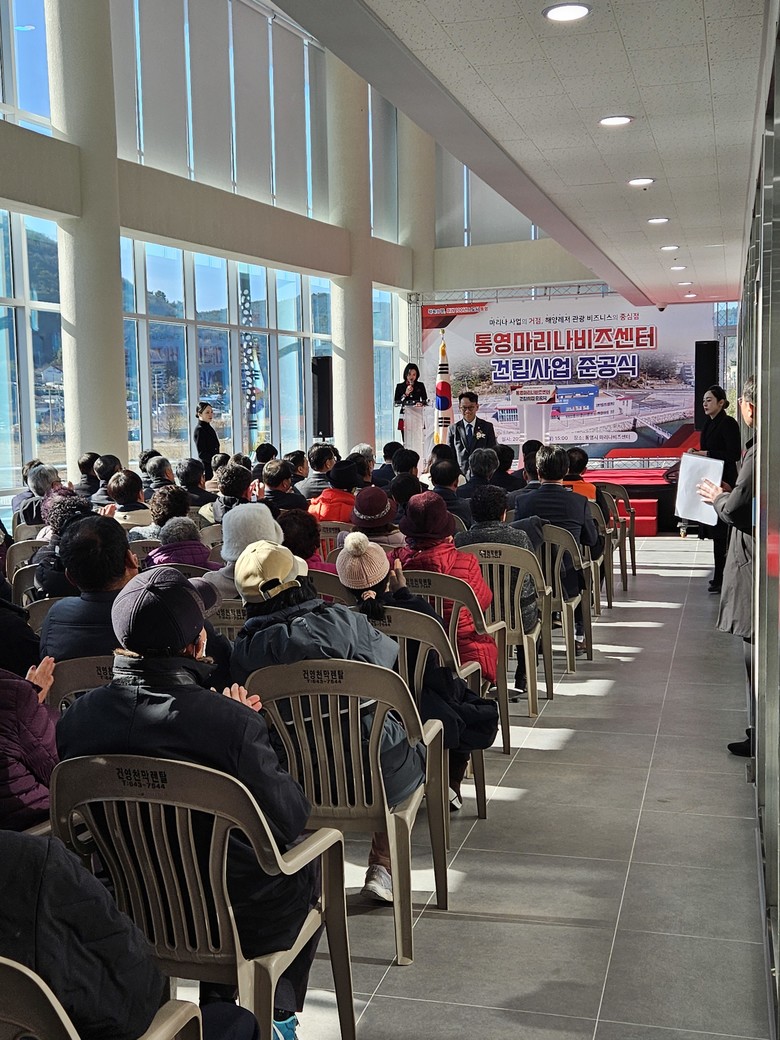 통영 마리나비즈센터는 총사업비 190억 원(국비 50%, 도비 15%, 시비 35%)을 투입해 연면적 1,733㎡ 규모로 조성됐다. 기업입주실과 상설전시실, 계류시설, 교육시설 등을 갖춰 레저선박 유통과 연계서비스를 지원한다.
