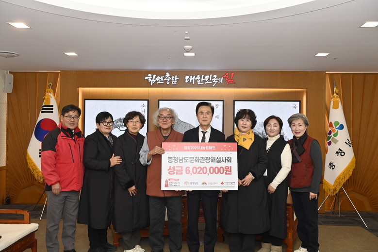 이날 도지사 외부접견실에서 열린 전달식에는 김태흠 지사, 성우종 공동모금회장, 오융진 충남문화관광해설사회장과 임원진 등이 참석했다.