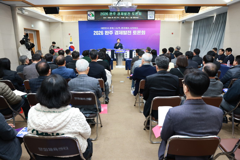 4일 완주군은 군청 대회의실에서 ‘2026 완주 경제발전 토론회’를 열고, ‘대한민국 경제 大도약, 완주에서 시작하다’라는 비전 아래 지역 주도의 산업 고도화와 소상공인 자생력 확보 방안을 집중적으로 논의했다.