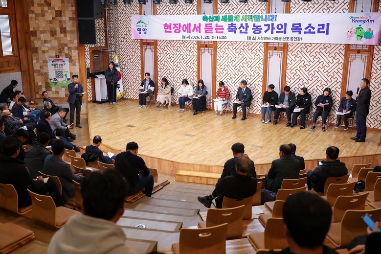 현장 중심 미래 대응형 축산정책 추진을 위해 올해 축산과를 신설한 영암군은, 가축 질병 예방, 방역체계 강화, 환경 규제 대응, 축산 경쟁력 강화 등을 위해 축산농가와 소통하는 자리를 마련한 것.