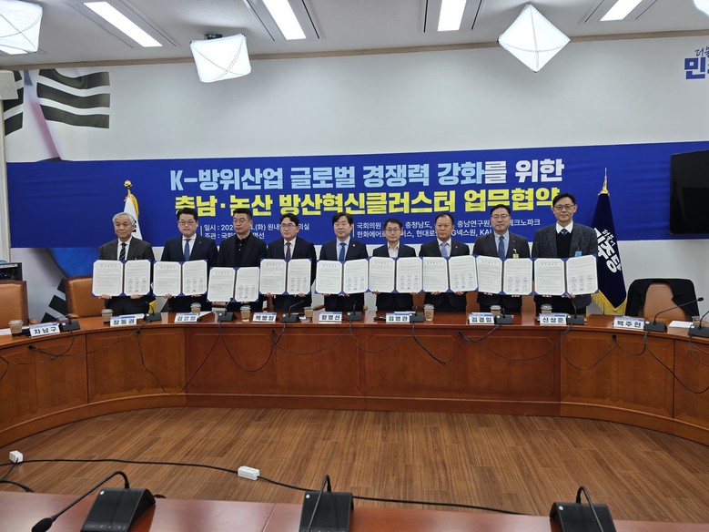 - K방산 글로벌 경쟁력 강화·방산혁신클러스터 등 공모 참여 협력 약속 - [세계타임즈=충남 이현진 기자] 대한민국 국방수도 충남이 방산혁신클러스터 유치를 위해 지역 국회의원, 글로벌 방산기업과 손을 맞잡았다.