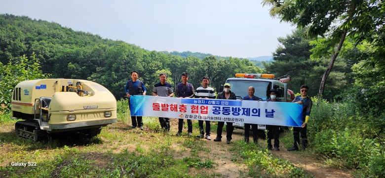 [강화군 세계타임즈=심하린 기자] 강화군(군수 박용철)은 지난 19일 돌발해충 피해 최소화를 위해 불은면 고능리 소재 장준감 과수원 인접 산림지역에서 농업기술센터, 산림공원과, 재배 농가의 협업으로 공동 방제를 실시했다.