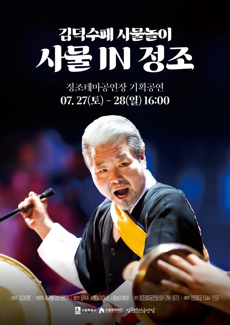 <김덕수패 사물놀이 ‘사물 in 정조’> 공연은 김덕수 예인 인생 60주년을 맞이하여 진행하는 전통 국악 공연이다. 김덕수가 이끄는 사물놀이는 한국 전통예술이자 현대의 첨단을 달리는 음악집단으로, 전 세계를 누비며 수많은 공연을 펼치면서 세계 음악계에 충격과 감동을 전해 왔다.