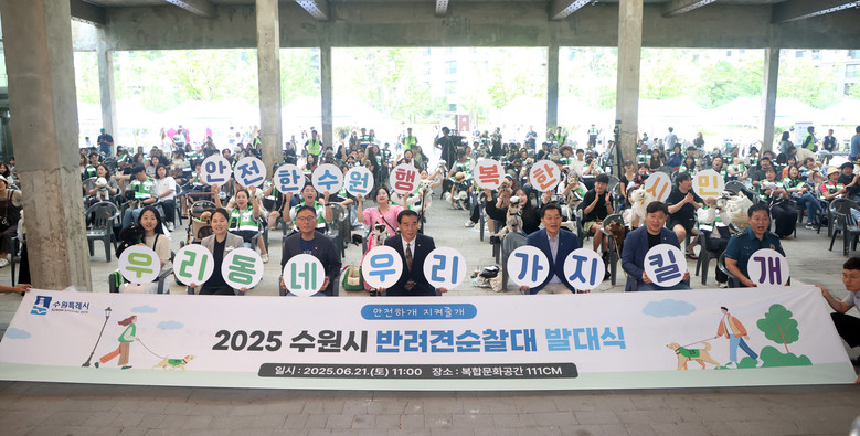 이날 발대식에는 이재식 의장을 비롯해 수원특례시의회 의원, 반려견 순찰대원 및 가족, 남부・중부・서부 경찰서 담당자 등이 참석해 시민 중심의 안전문화 확산에 동참했다.