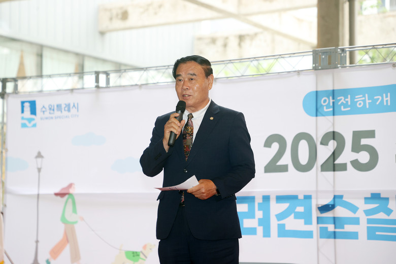 [수원시 세계타임즈=송민수 기자] 수원특례시의회 이재식 의장은 지난 21일(토), 복합문화공간 111CM에서 열린 ‘2025년 수원시 반려견 순찰대 발대식’에 참석해, 반려견 산책을 통한 시민 자율 참여 기반의 안전망 구축과 안전한 도시 조성에 뜻을 함께했다.