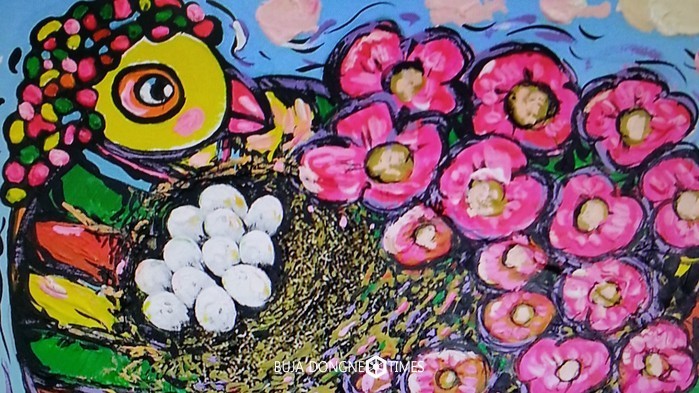 △화가 노의웅은 한국성을 지향하는 장생(長生)과 설화적인 민담(民談), 풍요와 관용의 정신주의가 담긴 해학적이고 희화적인 요소가 주류를 이루고 있다. |