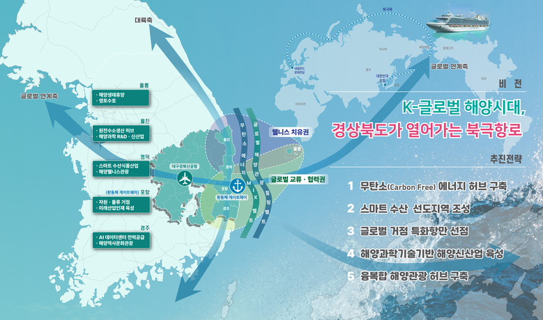 - 항공·해상 연계 물류·에너지·산업 기능 강화 검토 - [세계타임즈=경북 한윤석 기자] 경상북도는 ‘환동해 블루이코노미 신성장 계획’을 통해, 동해안 지역을 물류·에너지·산업이 연계된 해양경제 거점으로 발전시키기 위한 정책 방향을 제시했다.