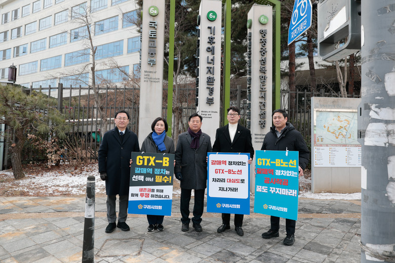 이날 구리시의회에서는 신동화 의장, 김성태 부의장, 정은철 운영위원장, 양경애 의원, 김용현 의원이 직접 국토교통부에 방문하여 결의안을 전달하며 GTX-B노선의 갈매역 추가 정차를 강력히 촉구했다.