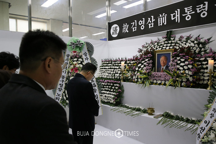 [광주=세계타임즈 손권일 기자]광주광역시 동구는 故 김영삼 전 대통령을 추모하는 구민들의 분향 편의제공과 국민적 애도와 추모에 동참하기 위해 故 김영삼 전 대통령 분향소를 청사 1층 로비에 설치하고 24일부터 추모객을 받고 있다.