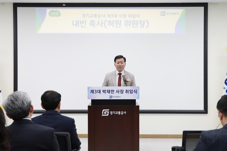 [경기도 세계타임즈=송민수 기자] 경기도의회 건설교통위원회 허원 위원장(국민의힘, 이천2)은 27일 경기교통공사에서 열린 제3대 박재만 사장 취임식에 참석해, 경기교통공사가 경기도 교통정책의 핵심 실행기관으로서 도민이 체감하는 교통서비스 변화를 이끌어야 한다고 강조했다.