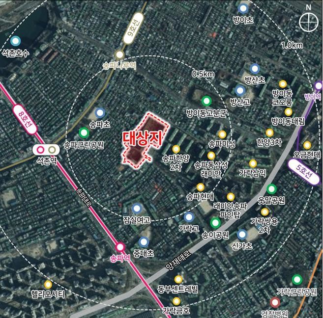 송파한양1차아파트는 1983년도에 건립되어 43년 경과된 노후·불량 공동주택으로 주차공간 부족, 건물 부식 등 오랜 기간 주거생활의 불편함을 초래하고 있는 단지이지만, 지하철 석촌역과 송파근린공원·송파여성문화회관 등 편의시설과 송파초·가락중 등 교육 인프라가 잘 갖춰져 있어 재건축을 통해 주거 만족도를 크게 높일 수 있는 곳이다.