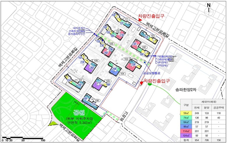- 주민공동시설 외부 개방 및 공원, 주차장(공원하부) 등 지역필요시설 공급 [서울 세계타임즈=이장성 기자] 송파구 송파동 119번지 일대 43년 된 송파한양1차아파트가 재건축사업을 통해 기존 576세대에서 954세대로 확대 조성될 전망이다.