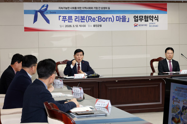 [옹진군 세계타임즈=심하린 기자] (재)옹진복지재단과 포스코A&C(사장 전훈태)는 3월 12일 농어촌 지역과 기업의 상생 협력을 통해 지역공동체 활성화를 위한 ‘푸른 리본(Re:Born) 마을’업무협약을 체결했다.