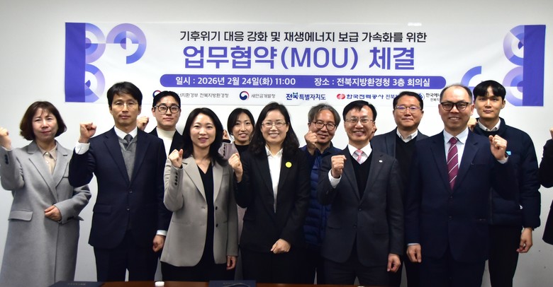 김호은 전북지방환경청장은 “이번 업무협약은 환경부가 기후에너지환경부로 확대·개편된 이후 재생에너지 보급 업무를 관계기관과 함께하는 의미있는 시작”이라며, “각 기관의 강점을 모아 협력하여 실질적인 성과로 이어질 수 있도록 현장 대응력을 높여 나가겠다”라고 밝혔다.