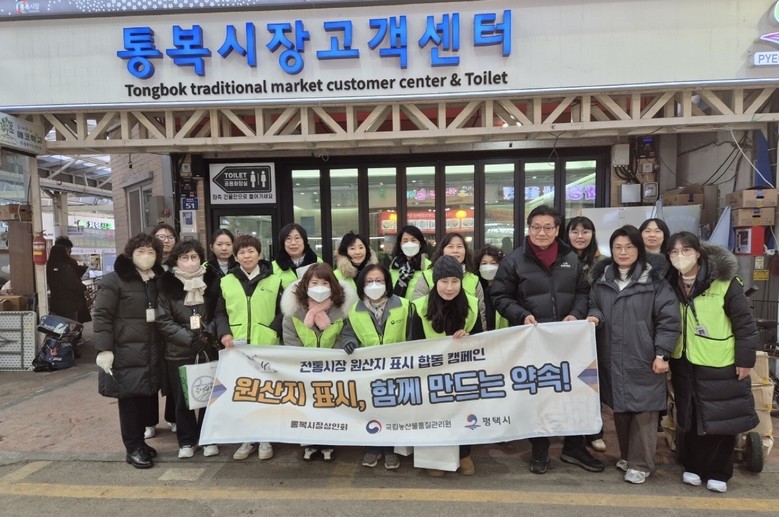 [세계타임즈=평택시 송민수 기자] 평택시(시장 정장선)는 설 명절을 앞두고 지난 2일 국립농산물품질관리원 평택사무소(평택농관원), 통복시장 상인회와 함께 통복시장에서 농산물 원산지 표시 홍보활동을 진행했다.